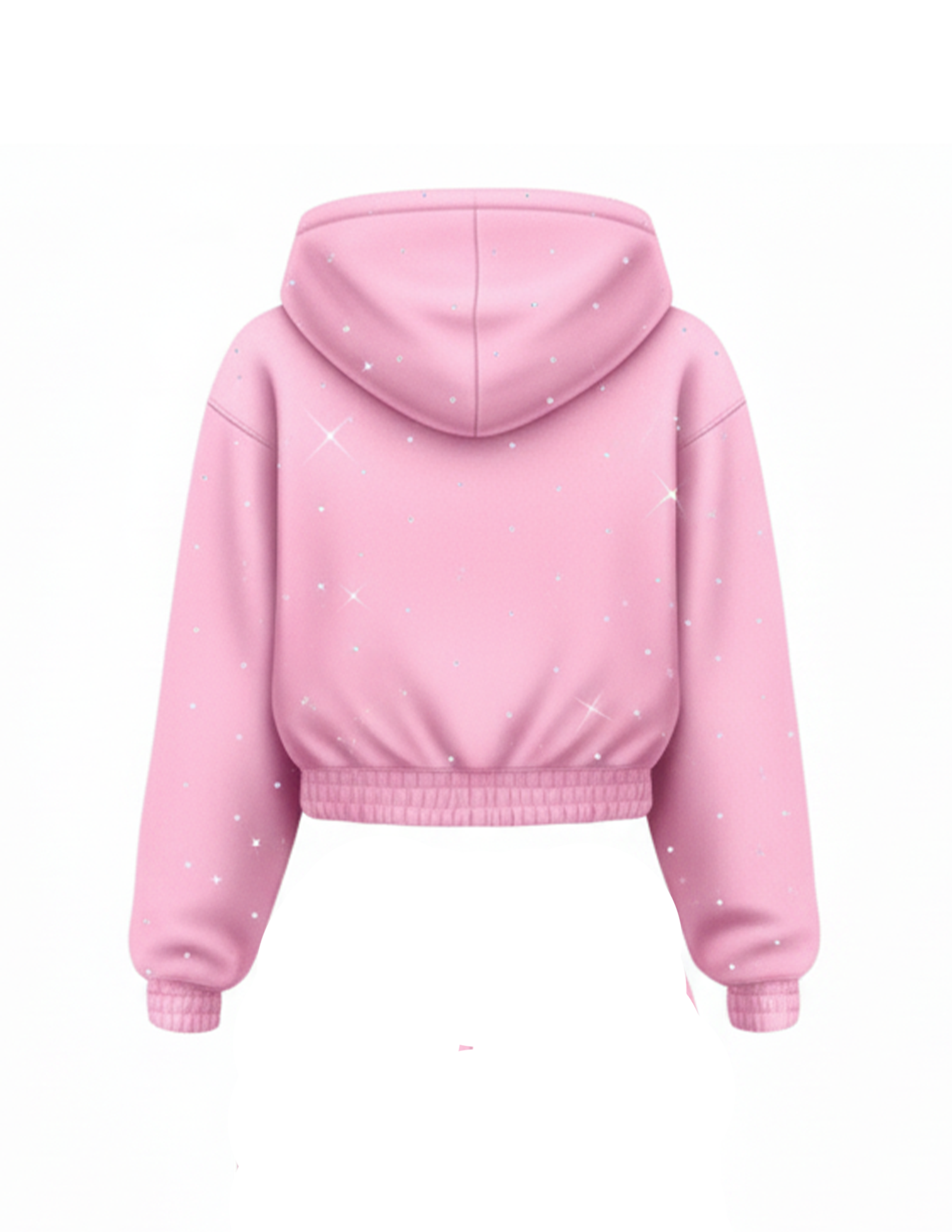 Step into the spotlight with the Pink Iced Bling Hoodie—designed for the Girlies who own the room. Made from ultra-soft fleece, this hoodie is all about comfort with an elevated twist. Dazzling rhinestones bring the perfect amount of sparkle, making sure you shine wherever you go. The scrunched waistband hugs you in all the right places for a flattering, confident fit. Whether you’re setting trends or just vibing, this hoodie has got your back—because you’re the main character.